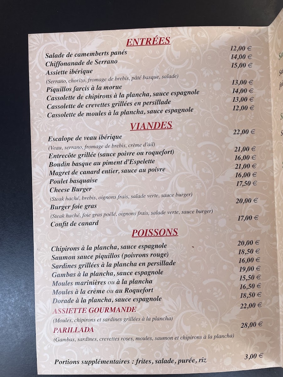 Ongi Ethorri, nestled at 15 Rue de la République in Saint-Jean-de-Luz, offers an authentic French dining experience with a Basque twist. The menu shines with generous portions, especially the mussels and Basque chicken, both praised for their rich flavors and satisfying size. Seafood lovers will find delights like fresh squid, sea bream, and mussels cooked in wine, showcasing the region’s bounty. The variety also includes hearty family-friendly options such as veal, shrimp, and even gourmet hamburgers, ensuring something for every palate.